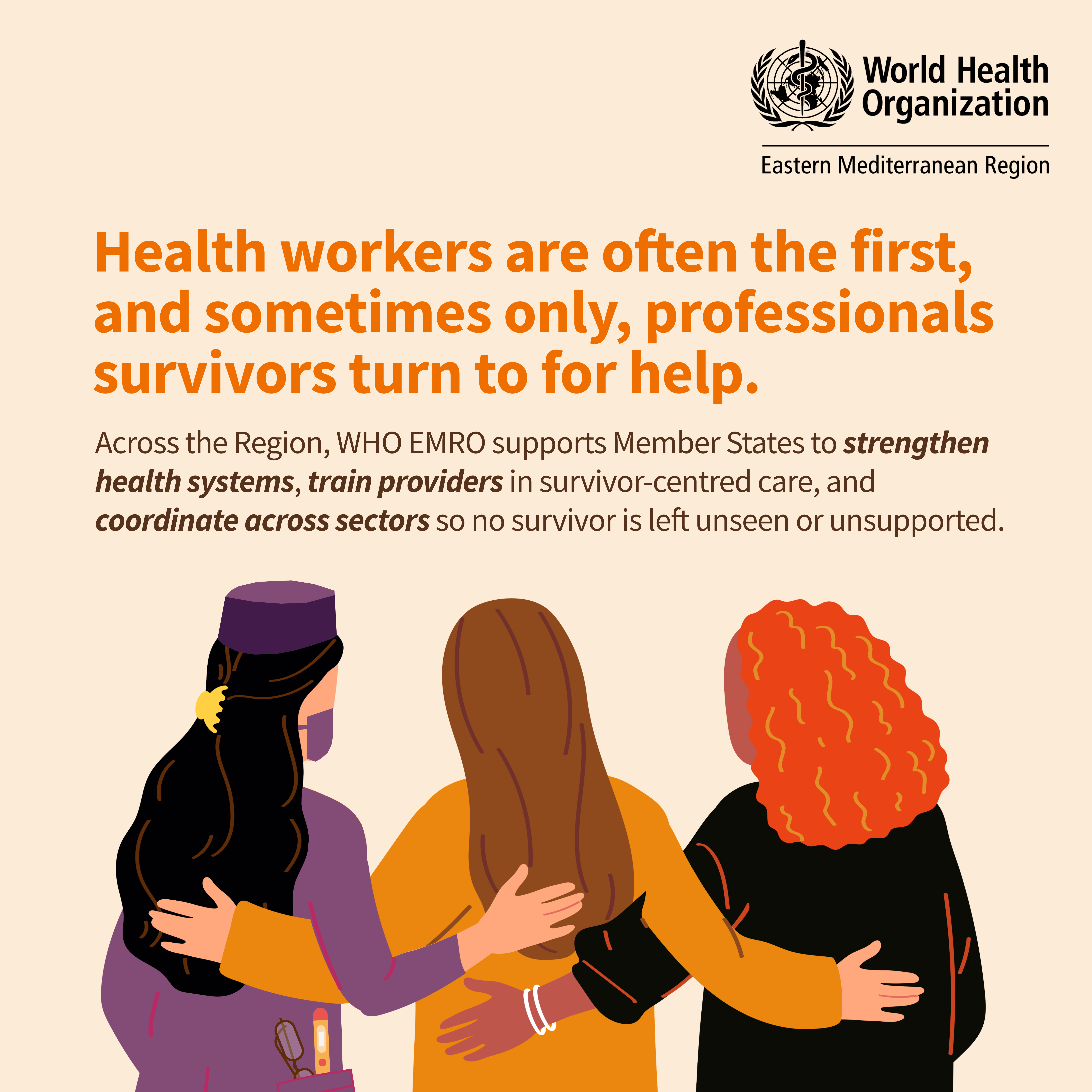 Health services are a critical entry point to address GBV. They are often the first point of care for survivors, and one that they most likely trust. Recognizing the key role of the health sector, the WHO Regional Office for the Eastern Mediterranean is working to support Member States strengthen their response to survivors of violence.