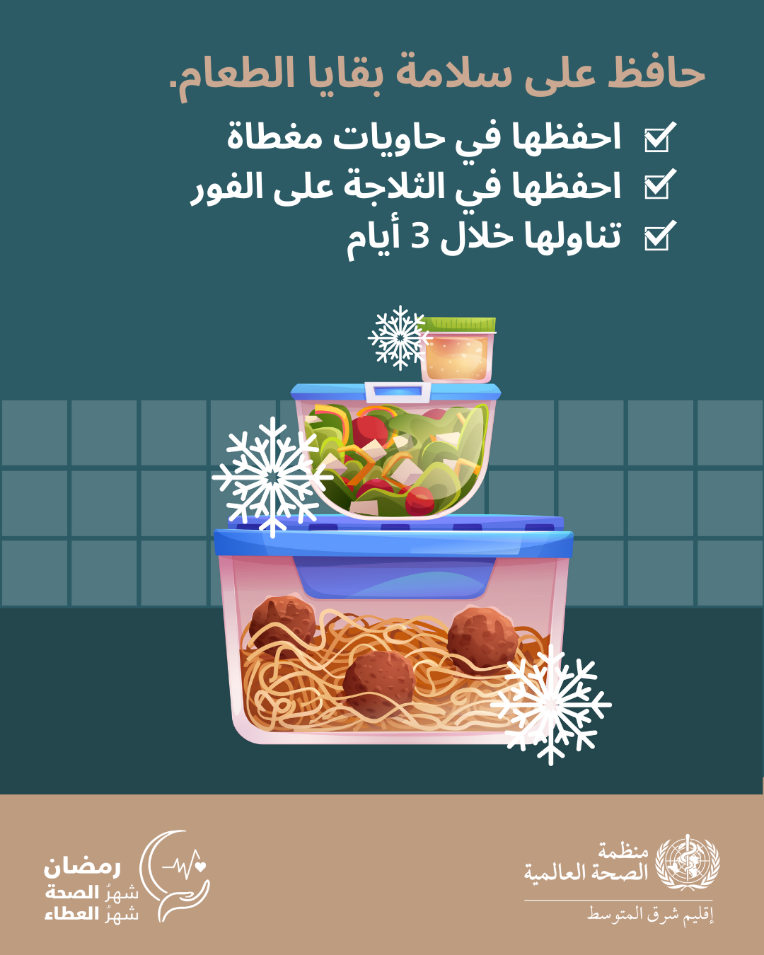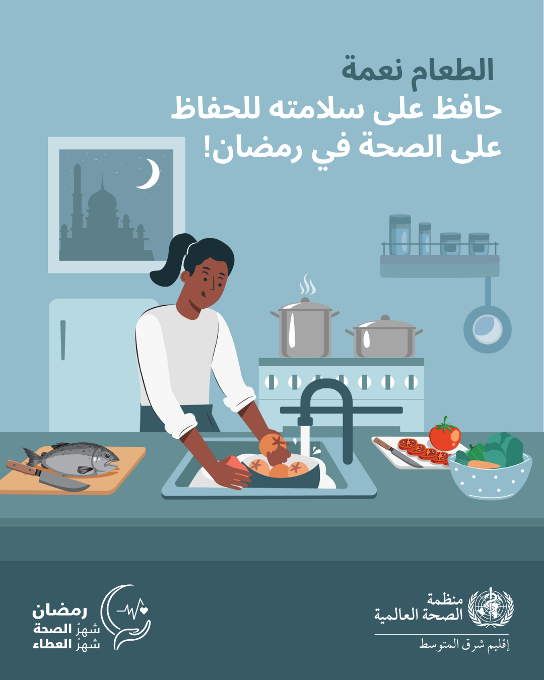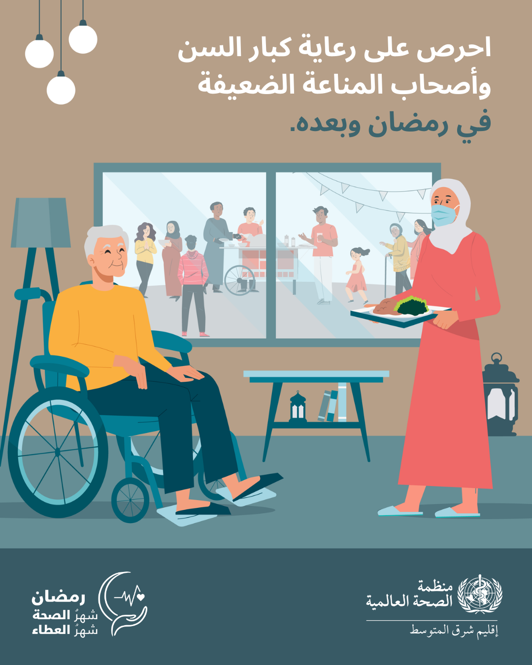 - 2. هل تعلم أن كبار السن والحوامل والأشخاص ذوي المناعة الضعيفة أكثر عرضة للإصابة بالتهابات الجهاز التنفسي؟ احرص على سلامة الجميع أثناء شهر رمضان باتباع إجراءات السلامة لوقف الجراثيم قبل انتشارها: