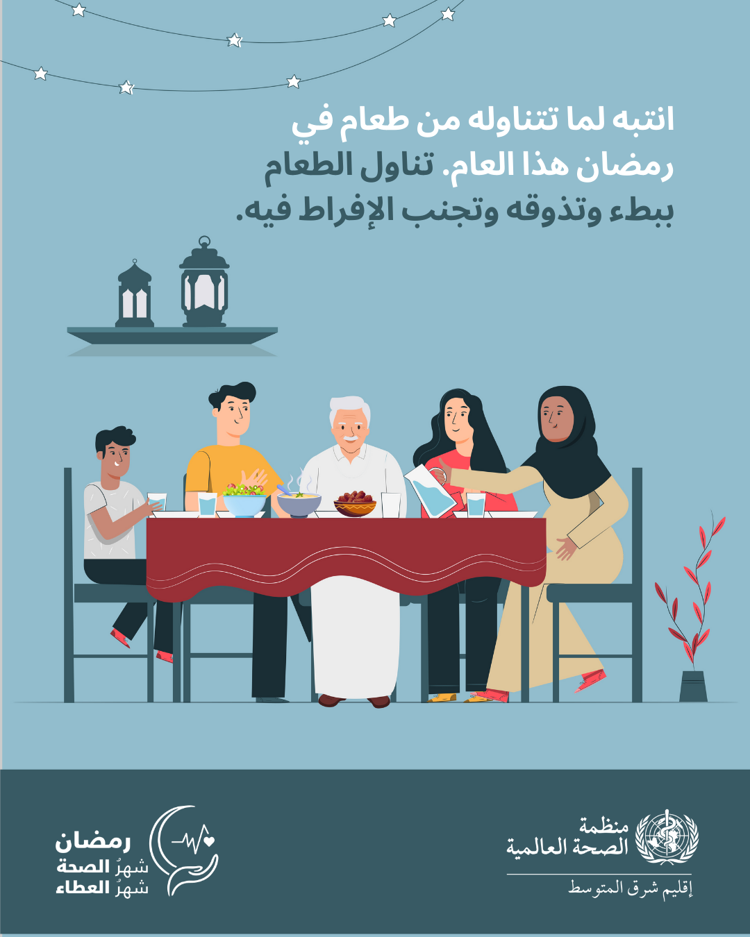 عندما تجتمع الأُسَر على مائدة الإفطار في رمضان المبارك هذا العام، ينبغي لهم أن يفكروا في ملايين الأشخاص في أنحاء إقليم شرق المتوسط ممن يعيشون واقعًا مختلفًا تمامًا. ففي سوريا، تفتقر المستشفيات إلى الأدوية الأساسية. وفي السودان واليمن، نجد أن الأطفال الذين يعانون من سوء التغذية أضعف من أن يتمكنوا من مقاومة الأمراض. وفي غزة، يُجري الأطباء عمليات جراحية بدون مستلزمات أساسية مثل المبنجات. وفي أفغانستان والصومال، تنتشر فاشيات الأمراض دون سيطرة في ظل نُظُم صحية دمرتها سنوات من الصراع.