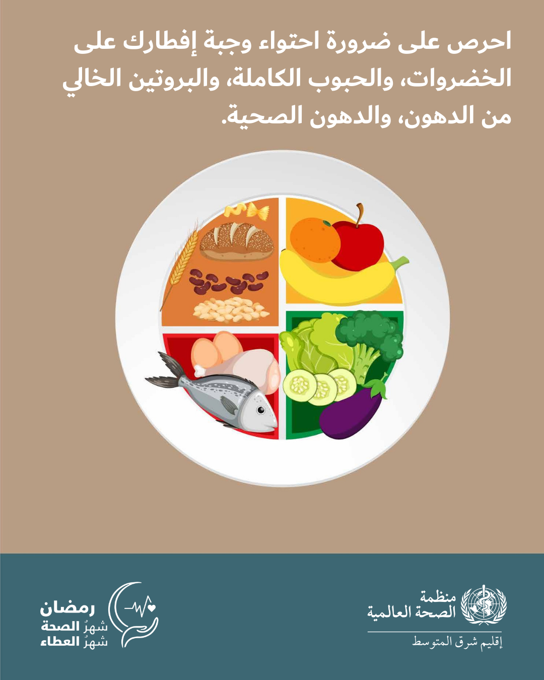 تعرَّفي على العلامات التحذيرية مثل نقص حركة الجنين، والقيء المستمر، والإغماء، وتغيُّر لون البول وكميته، والتعرُّق الشديد على نحو غير معتاد. اتصلي بمقدم الخدمات الصحية على الفور عند ظهور أي من تلك العلامات. النظام الغذائي الصحي - تناول طعامًا صحيًا في شهر رمضان هذا العام