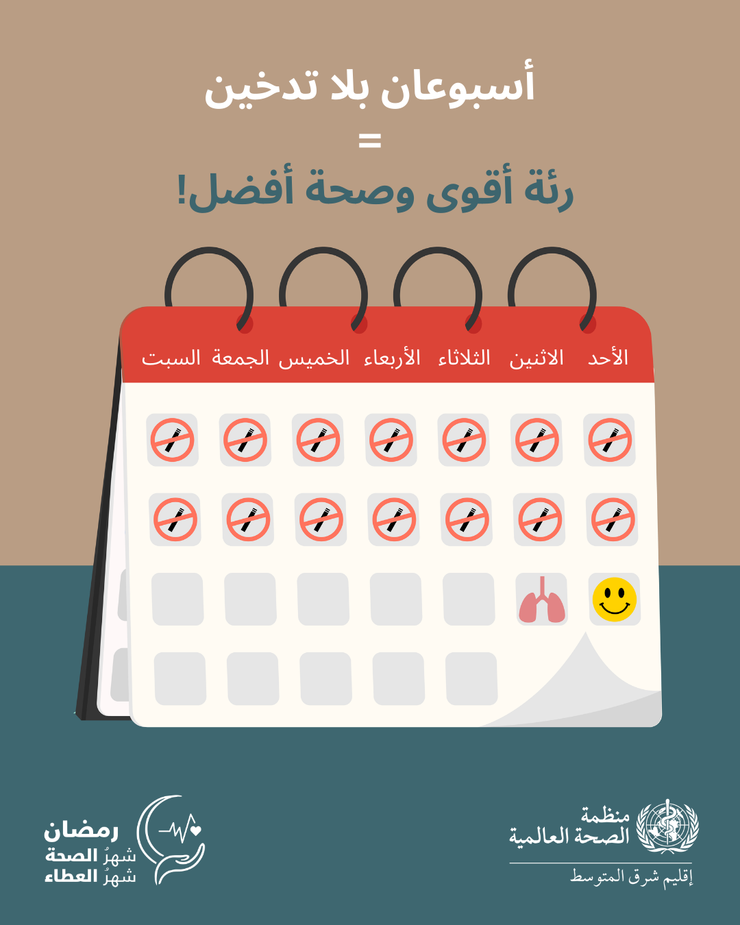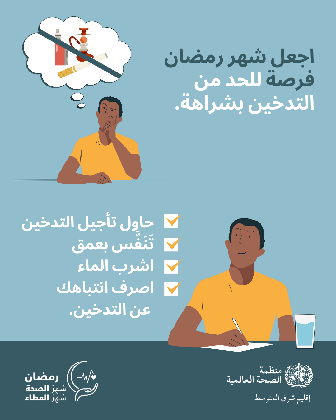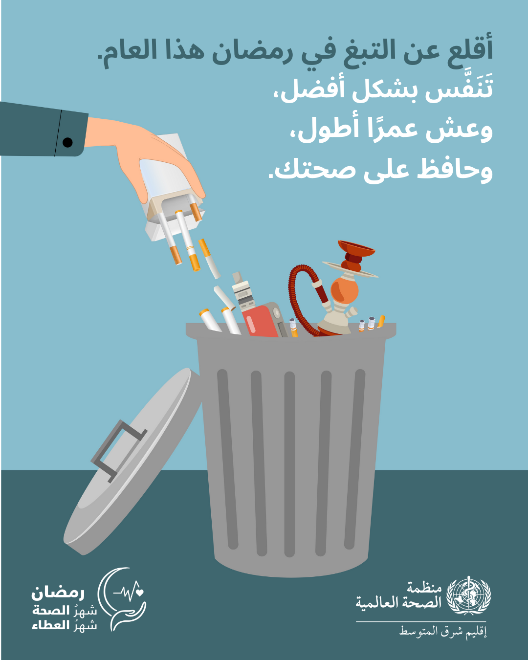 اجعل من شهر رمضان فرصة للتوقف عن ذلك. اختر الصحة والعطاء للمحتاجين بدلًا من الإنفاق على منتجات التبغ والنيكوتين.