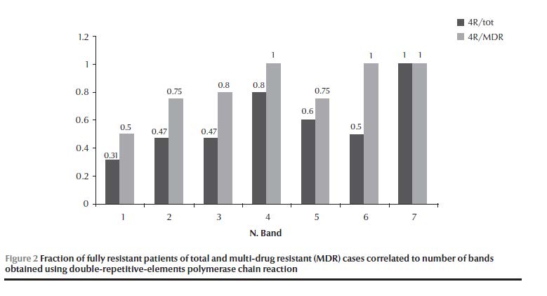Different methods have been used for the genotyping of M. tuberculosis TB. These vary in the time required for testing and their resolution, specificity, typeability, reproducibility, robustness, complexity, cost and amenability to databank construction. The double-repetitive-element polymerase chain reaction (DRE-PCR) genotyping method addresses variations in the proximity presence and the interspace distance separating 2 exceptionally important repetitive DNA elements: insertion sequence (IS) 6110 and polymorphic GC rich repeat (PGRS). The method is relatively fast, simple and cost-effective [6]. It suffers, however, from a lack of reproducibility due to the occasional absence of low-intensity bands and from only an average level of resolution [7]. At minimum, the technique serves as a tailored approach for preliminary genotyping and has the potential for efficient implementation in a low-resource country, where TB is generally widespread and endemic.