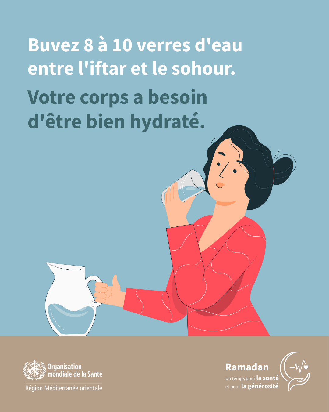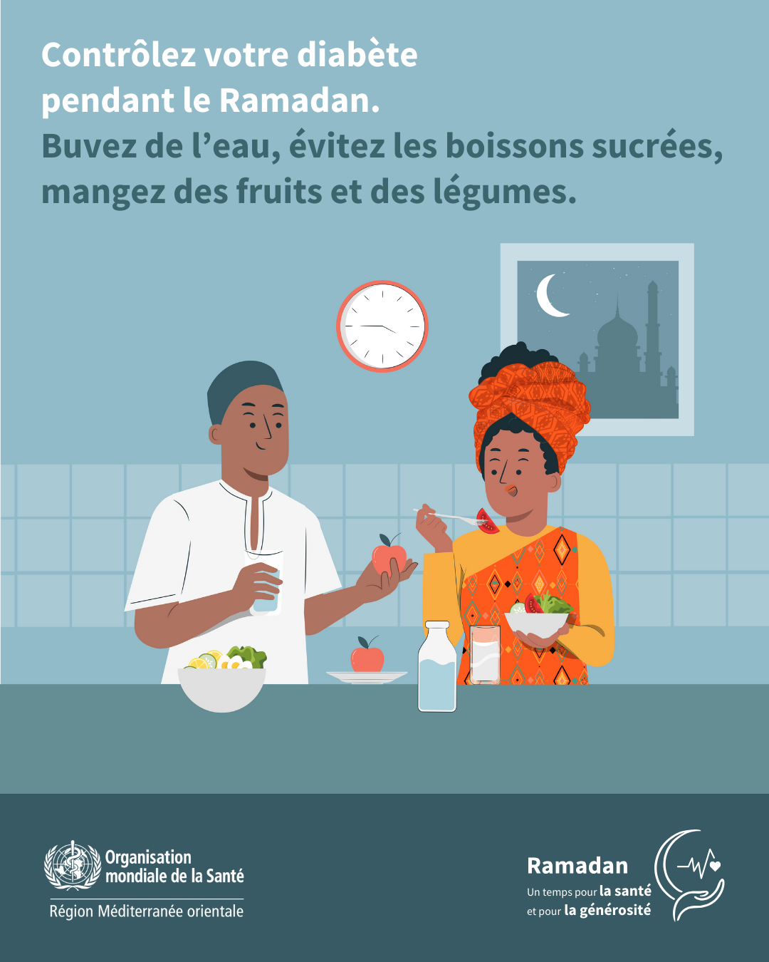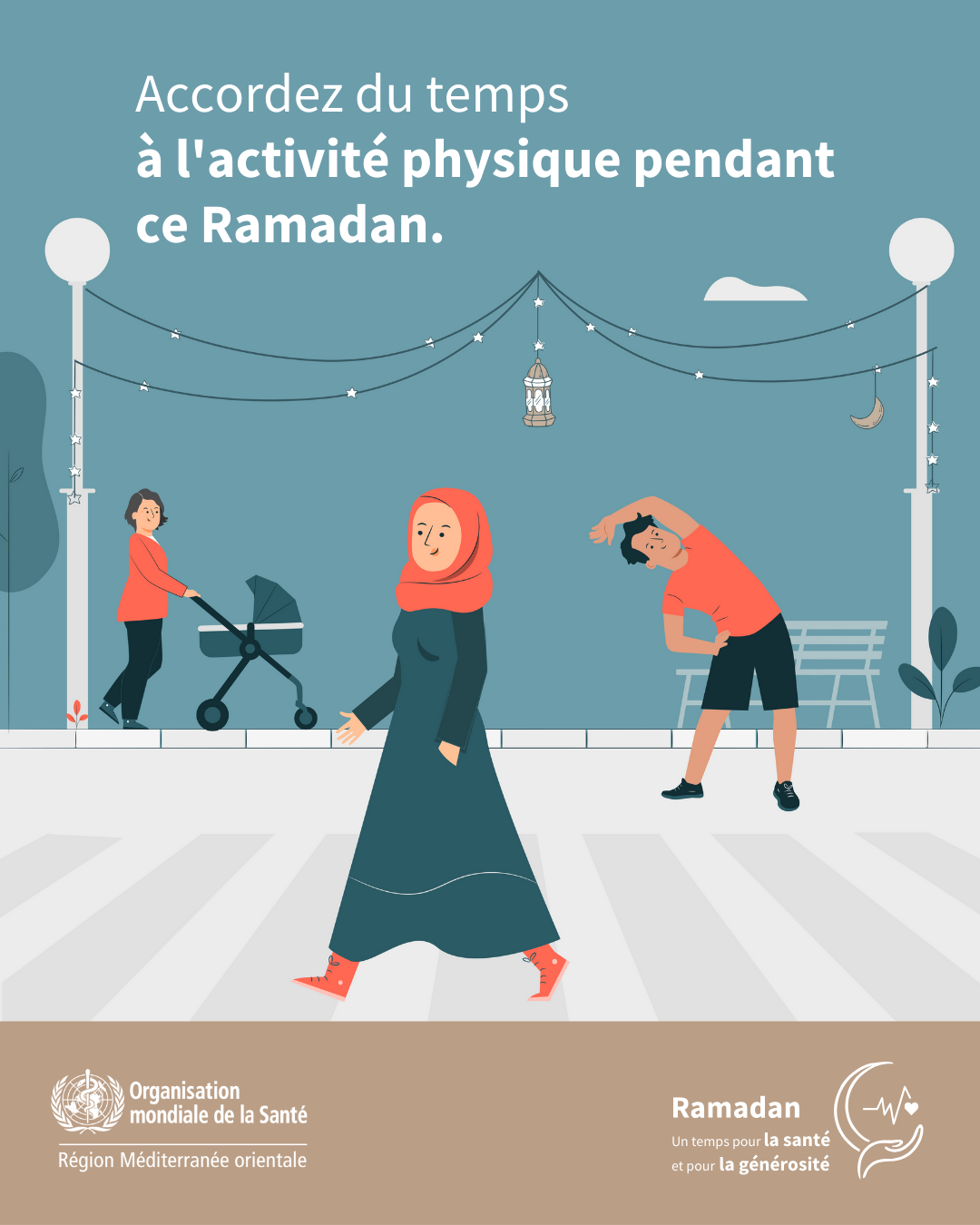 Le Ramadan est une excellente occasion pour les personnes de se retrouver, de partager des moments de qualité et de prier ensemble. Rester en bonne santé, malgré la proximité et l’augmentation des interactions, nous permet de mieux profiter de ces rassemblements. Adoptons de bonnes habitudes pour rester en forme pendant et après le Ramadan. Voici trois messages clés à retenir :