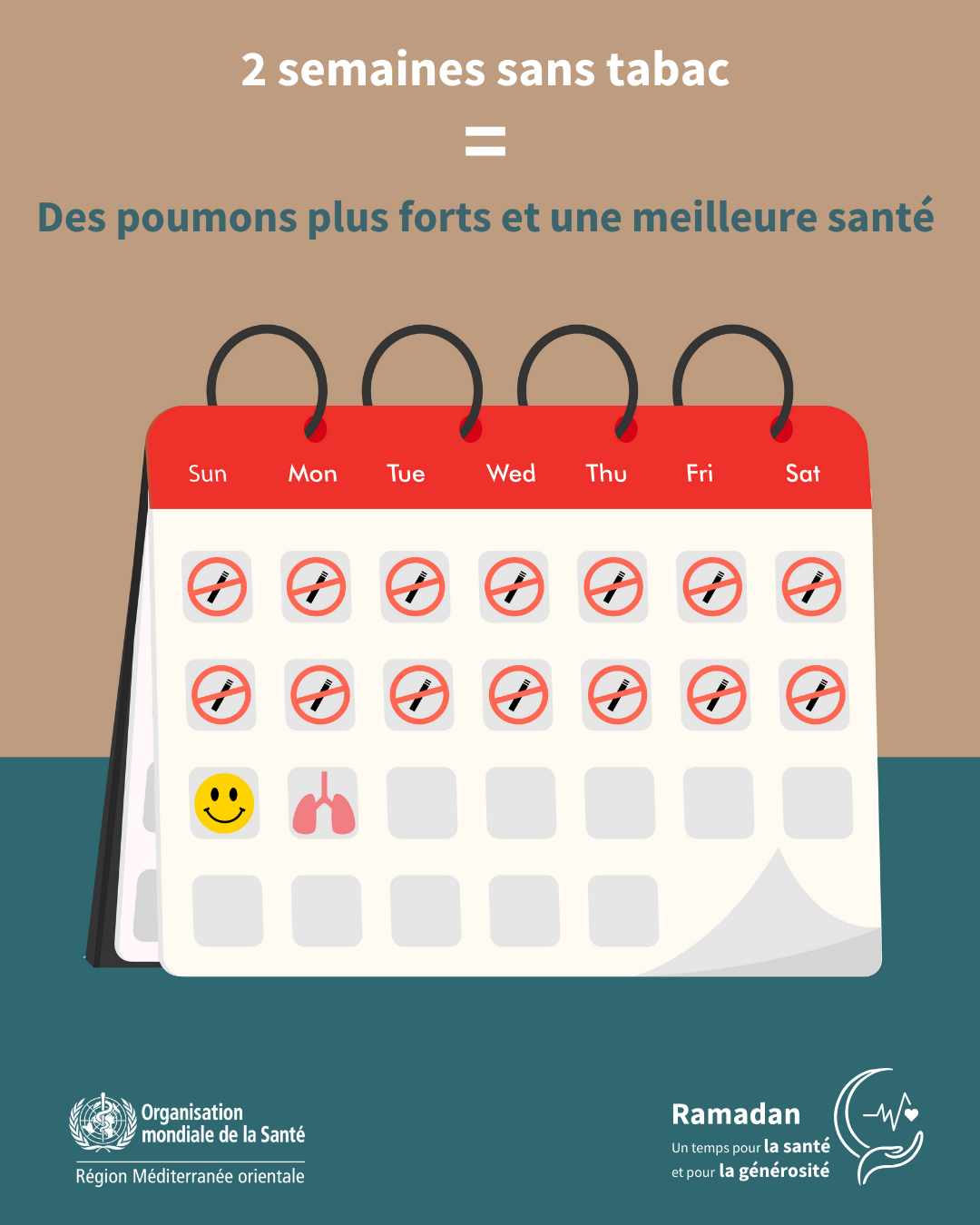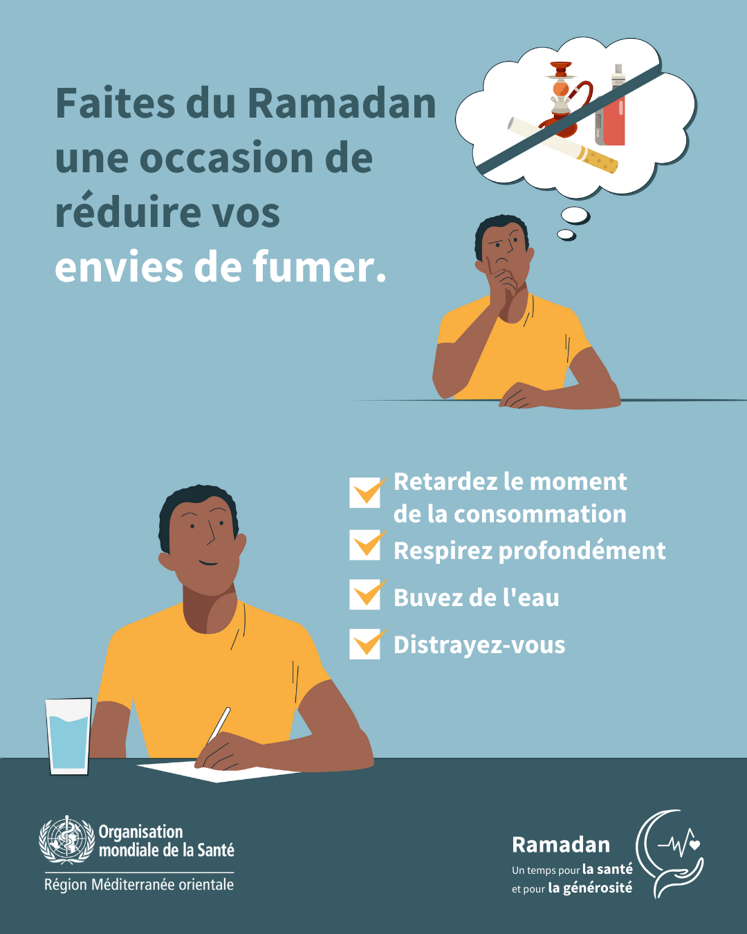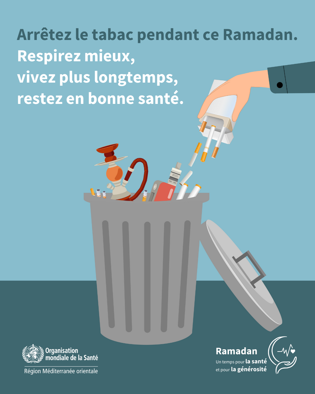 Chaque somme dépensée pour le tabac, les cigarettes électroniques ou les produits de tabac chauffé nuit à votre santé et alimente une industrie toxique. Ce Ramadan, rompez avec les mauvaises habitudes. Choisissez la santé et aidez les personnes dans le besoin plutôt que de dépenser pour acheter des produits du tabac et à base de nicotine.