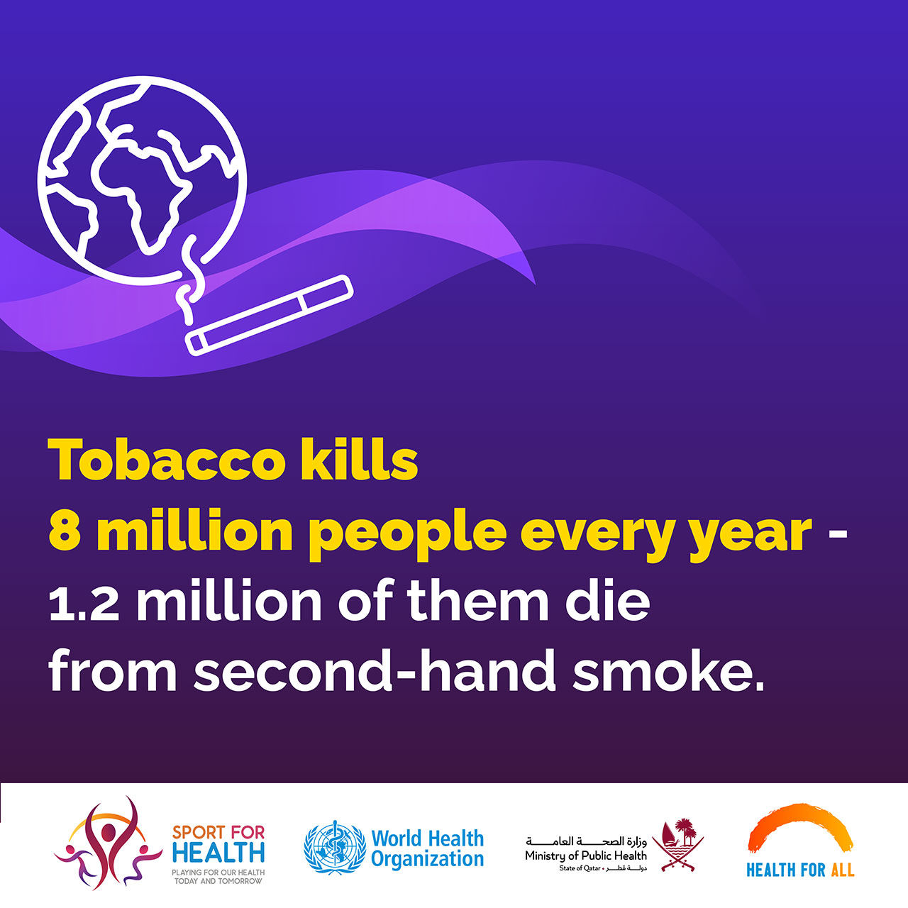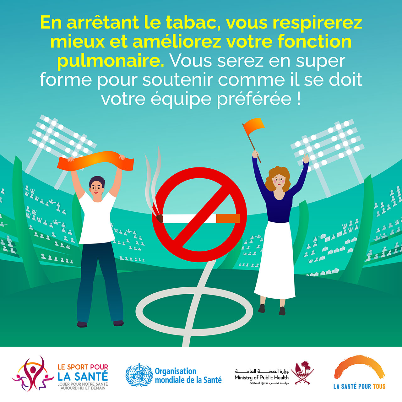 Providing options for people to lead healthy lives is at the heart of health promotion, including through tobacco cessation and control, which is a priority of the Healthy FIFA World Cup Qatar 2022™ project. The project will promote ways for people to be able to quit tobacco, raise awareness of the importance of tobacco cessation, and show how tobacco cessation and control is beneficial to people’s health.